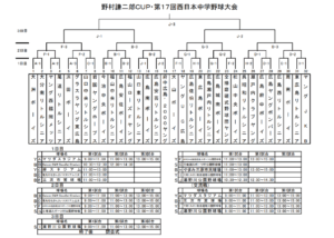 【野村謙二郎CUP・第17回西日本中学野球大会】の組み合わせが決定致しました!
