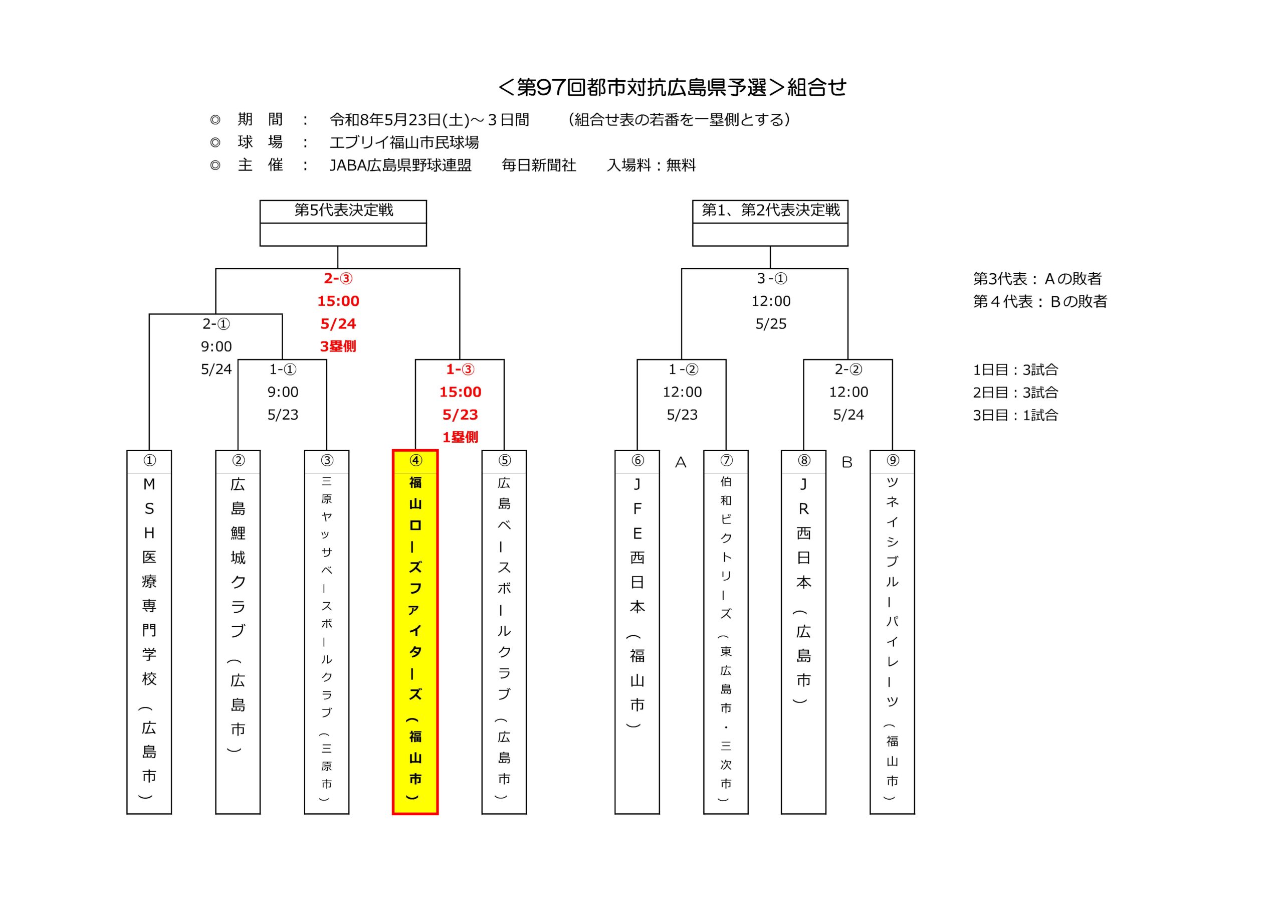社会人野球最高峰の大会、第97回都市対抗野球大会の一次(広島県)予選の組み合わせが決まりましたので、お知らせいたします。